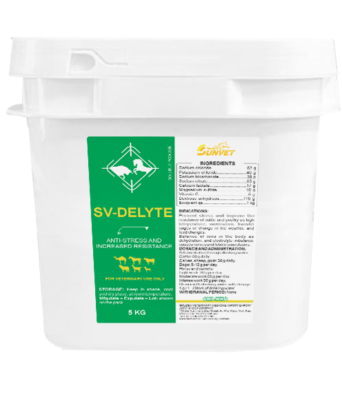 Prevent stress and improve the resistance of cattle and poultry as high temperature, vaccination, transfer cages or change in the weather, and feed changes.