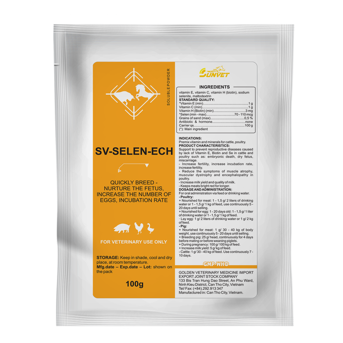 Support to prevent reproductive diseases caused by lack of Vitamin E, Biotin and Se in cattle and poultry such as: embryonic death, dry fetus, miscarriage.